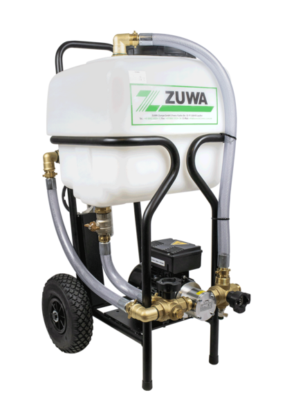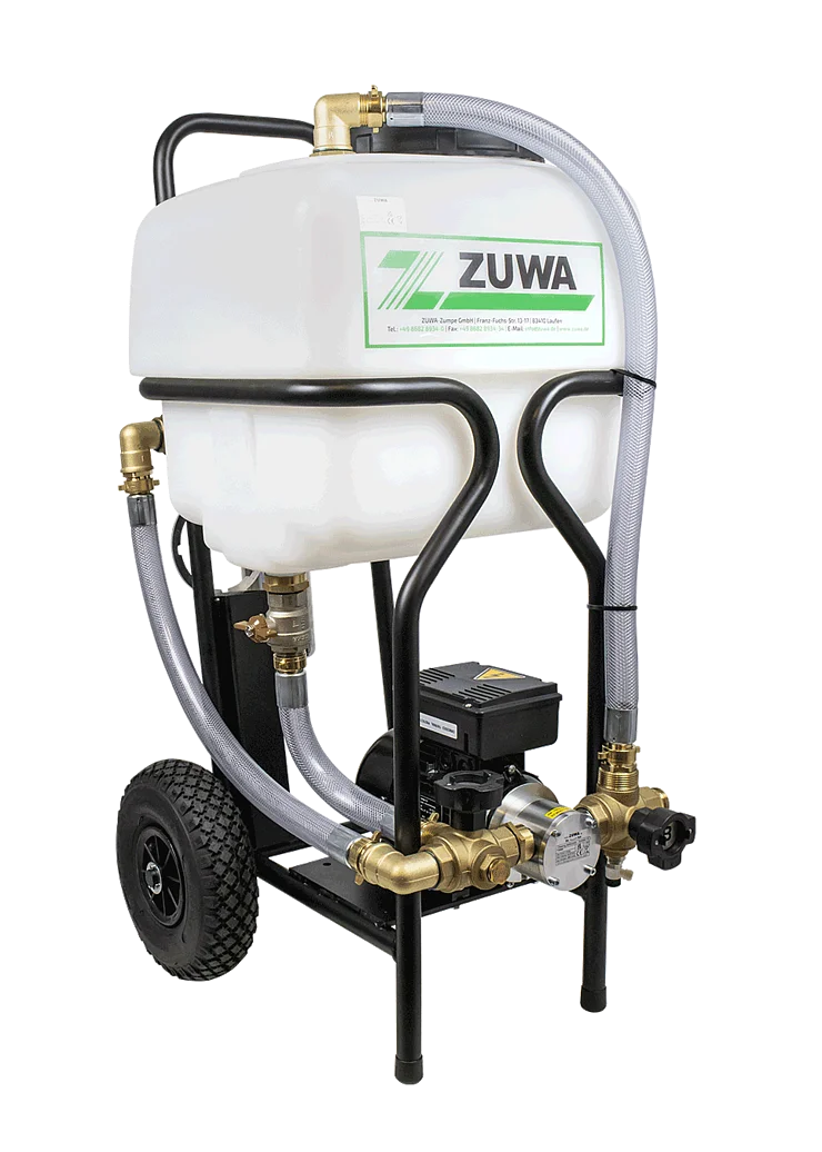 Flush solar systems, fill them with heat transfer media, and vent them in a single step. The latest versions of ZUWA solar filling stations for flushing and filling solar thermal systems are small, easy to transport, and fit upright in the trunk of a car.