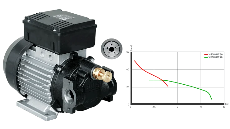 Flügelzellenpumpen aus der Viscomat-Serie eignen sich für saubere Öle und Diesel bis zu einer Viskosität von 500 cSt (z. B. Heizöl, Pflanzenöl, Motoröl) mit einer max. Medientemperatur von 60 °C.