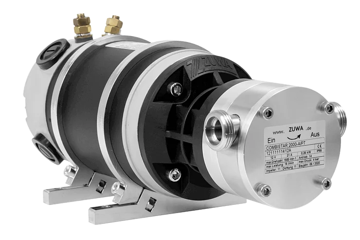 Die ZUWA Impellerpumpen der COMBISTAR-Reihe können auch mit DC-Motoren betrieben werden. Dabei kommt unser Pumpenträger Schnellwechselsystem zum Einsatz.