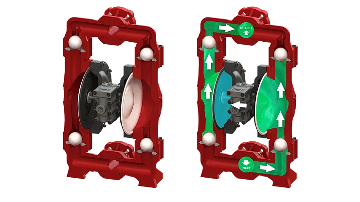Die überarbeiteten Druckluft-Membranpumpen bieten ein innovatives Luftverteiler-Design, das eine besonders einfache Wartung und Reparatur ermöglicht. Das integrierte Anti-Stall-System sorgt für einen unterbrechungsfreien Betrieb – mit reduziertem Luftverbrauch und deutlich geringerer Geräuschentwicklung.