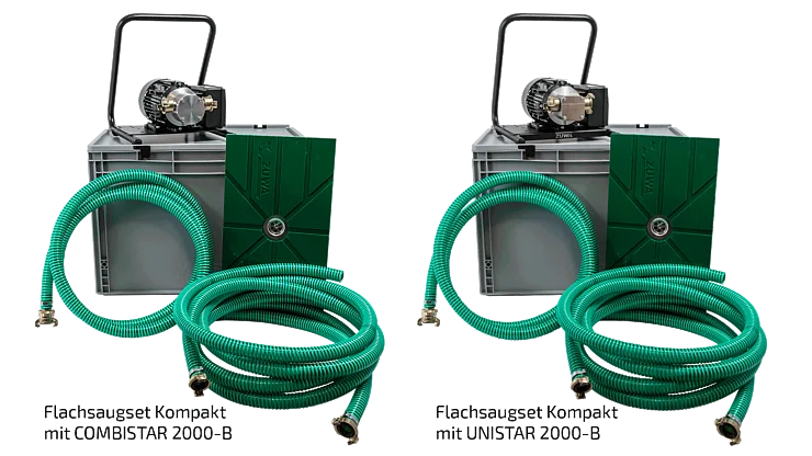 Praktische Flachsaugsets für den schnellen und mobilen Einsatz bei Notfällen oder zur Restwasserentleerung