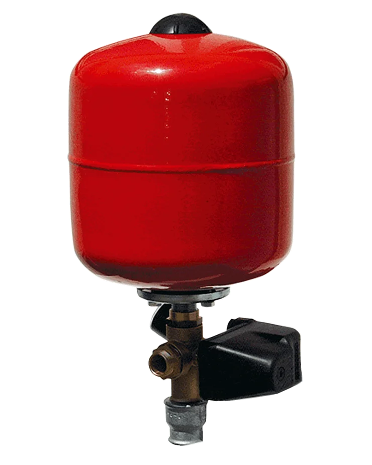 Mechanische Pumpensteuerung mit Druckausgleichsbehälter, Druckschalter und Manometer. Besonders geeignet zur Druckerhöhung und für Pumpen mit hoher Kapazität (kein Trockenlaufschutz).
