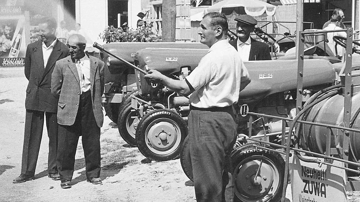 Bereits 1959 wurden dann die ersten Spritzgeräte entwickelt und Sonderanfertigungen für die Landwirtschaft hergestellt. 1960 ersteigerte das Ehepaar Zumpe in Laufen ein Grundstück und begann mit dem Bau des Firmengebäudes. An diesem Standort ist auch heute noch der Firmensitz von ZUWA.