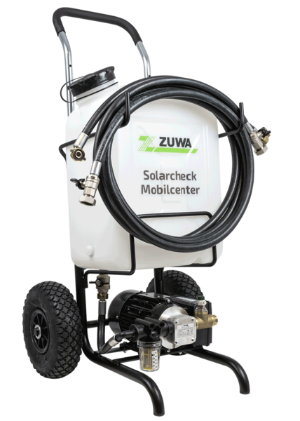 Solaranlagen spülen, mit Wärmeträgermedien füllen und entlüften in einem Arbeitsgang. Die neuesten Versionen der ZUWA-Solarfüllstationen zum Spülen und Befüllen solarthermischer Anlagen sind klein, leicht zu transportieren und passen aufrecht in den Kofferraum eines PKW.