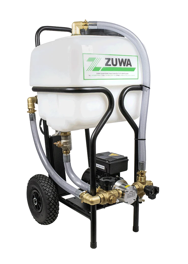 Durch die leistungsfähige, trocken selbstansaugende Pumpe, den stabilen Wagen mit großen Luftreifen, den höhenverstellbaren Teleskopgriff und den austauschbaren Kanister ermöglicht es dem Benutzer einen besonders einfachen Transport und eine professionelle Handhabung.