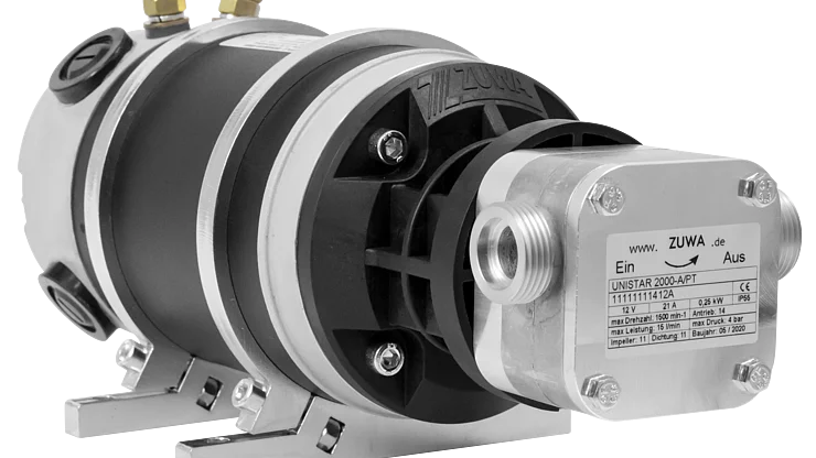 Die ZUWA Impellerpumpen der UNISTAR-Reihe können auch mit DC-Motoren betrieben werden. Dabei kommt unser Pumpenträger Schnellwechselsystem zum Einsatz.